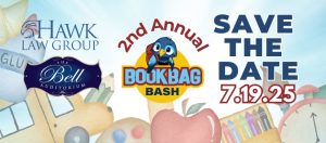 Hawk Helps and the Hawk Law Group are thrilled to announce the upcoming 2nd Annual Bookbag Bash, a back-to-school event designed to provide free school supplies to students from kindergarten to 12th grade.