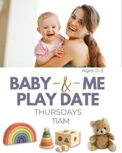 A social hour for babies and their caregivers. Age appropriate games and toys provided. For ages 0-3.