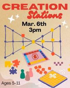 Come join us for an hour of free play and exploration. Our selections include floor puzzles, brain games, and construction toys designed to help children develop fine motor skills and critical thinking.
