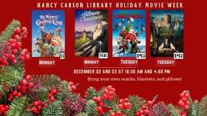 This heart-warming tale details the journey that led to Charles Dickens’ creation of “A Christmas Carol,” a timeless tale that would redefine Christmas. Bring your own snacks, blankets, and pillows. Rated PG.