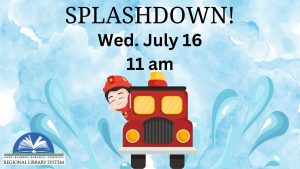 Event is rain or shine. There will be no storytime on July 16 due to Splashdown.
