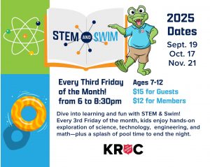 Dive into learning and fun with STEM & Swim! Every 3rd Friday of the month, kids enjoy hands-on exploration of science, technology, engineering, and math — plus a splash of pool time to end the night.