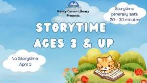 Join us for fun stories, songs, and bubbles! No storytime Friday, April 3 due to the Good Friday holiday.