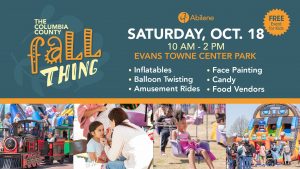 Abilene Baptist Church invites your family to The Columbia County Fall Thing – a FREE event for toddlers through 5th grade kidz on Saturday, October 18, from 10 AM – 2 PM at Evans Towne Center Park!