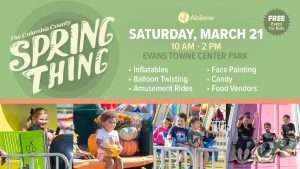 Abilene Baptist Church invites your family to The Columbia County Spring Thing – a FREE community event for toddlers through 5th grade kidz on Saturday, March 21, from 10 AM – 2 PM at Evans Towne Center Park!