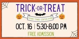 Join us for a fun night of Trick-or-Treating from 530-8 PM on October 16th at Evans Towne Center Park. Don’t forget your candy buckets!