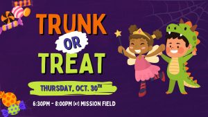We are excited to host our annual Trunk or Treat on Mission Field at Midland Valley Community. FREE, SAFE, & FUN for the whole family.